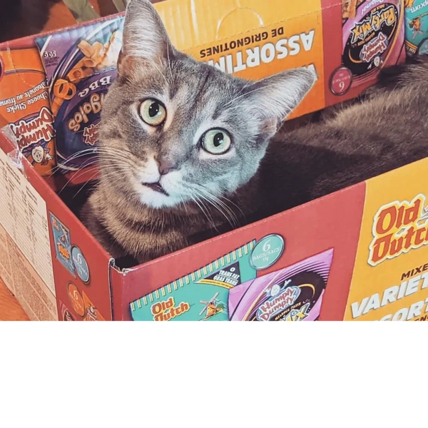 Willow (silver tabby) is 6 years old and a real cuddle bug. She also loves a good quality cardboard box!